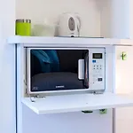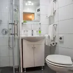 A fürdőszobában külön WC, fürdőkád és zuhanyzó biztosított, illetve a vendégek használhatnak egy konyhát.